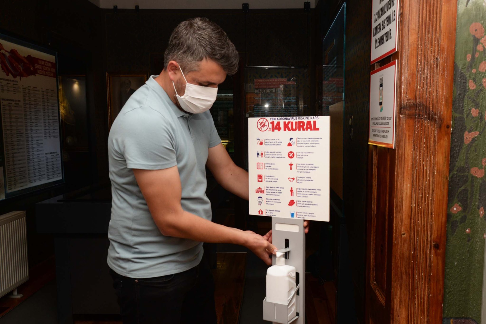 Kontrollü normalleşme sürecinde ziyaretçilerini belirtilen sağlık önlemlerini dikkate alarak ağırlayacak olan müzemizde alınan tedbirler kapsamında girişe yerleştirilen el dezenfektanı, temassız cihazla vücut ısı ölçümü, ziyaretçi ve müze görevlilerine maske takma zorunluluğu ve sosyal mesafe uyarıları yer alırken, sınırlı ziyaretçi uygulaması yapılarak aynı anda 8 ziyaretçi kabul edilebilecek. Müze açılış hazırlıkları kapsamında ayrıca bahçede ve müze içerisinde genel temizlik ve dezenfekte çalışmaları yapılarak banklara da sosyal mesafe uyarıları yapıştırıldı. Belediyemiz Şehir Müzesi ve Arşivi ile faaliyetleri hakkında bilgi almak isteyen herkes müzemize resmi internet sitesi, facebook ve ınstagram hesaplarından ulaşabilir.